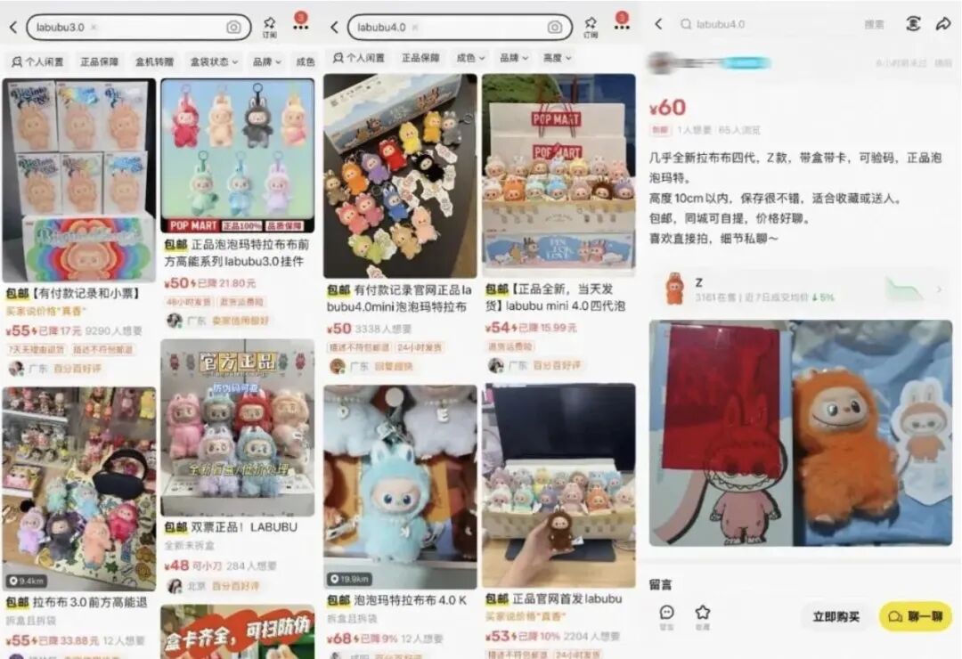 而现在,打开二手平台,就是完全不同的画风。Labubu隐藏款的价格普遍被砍掉一大半;很多之前炒到上千元的热门款,现在只剩几百块的成交价。平台上到处是“亏本出”“急出”“打包清仓”的挂单,曾经抢着要的款式,现在根本没人愿意接盘,二级市场上的转售者也出现集中抛售的情况。