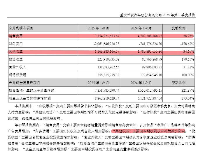 最后,看下长安汽车的三季报。