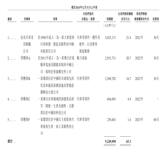 高开低走后公司仍需采购华为的技术、宁德的电池并依赖长安代工。从供应商结构来看,截至2024年,阿维塔前三大供应商正是长安汽车、宁德时代和华为。
