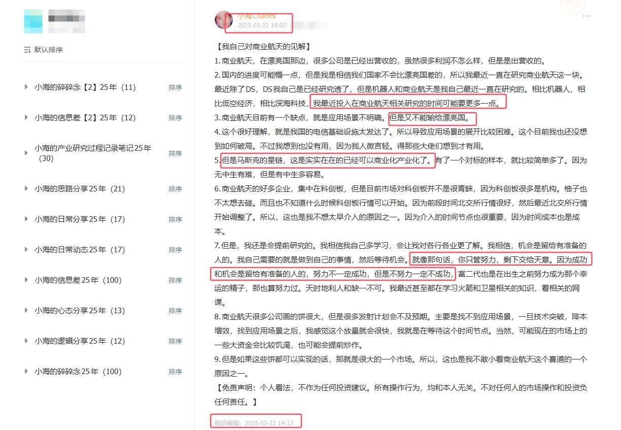 现在再看我自己上半年的时候在星球的对商业航天的判断和研究,简直被我自己帅到了。当时只是研究整个行业,整个上下游产业链。先选行业,选未来产业。再选公司,选行业核心公司。【这或许就是机构风格机构思维的精髓之一吧?】,比如这次的行业就是商业航天行业,也是未来产业。比如这次的铖昌科技【*ST铖昌】就是商业航天的核心公司之一。