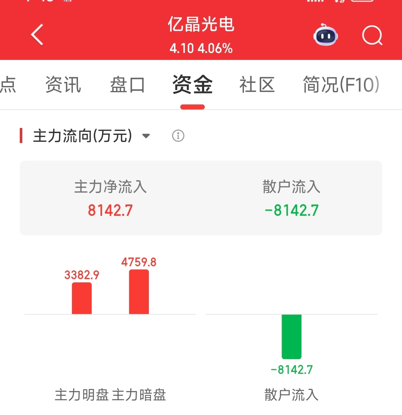 2. 资金特征:主力净流入8142.7万元,明盘净买3382.9万元(占41.5%),暗盘净买4759.8万元(占58%+);