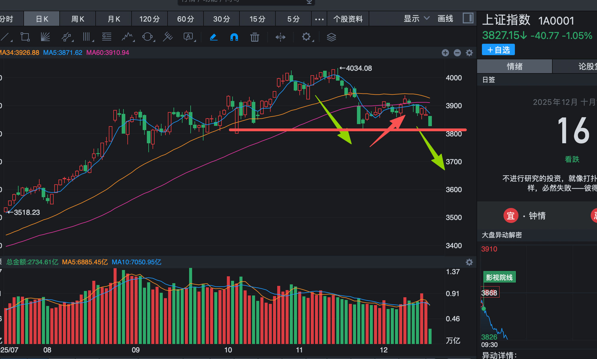 2025年这波牛市,很多人不仅仅没赚到钱,还在年底变盘的过程中亏了大钱啊,今天港股A股开盘后就一路暴跌,上证指数跌幅接近1%。而这波下跌背后主要有3个利空导致的,这三个利空驱动下,今天一定要重视这个关键电位的得失,一旦跌破这个位置,那就是确认牛转熊了。