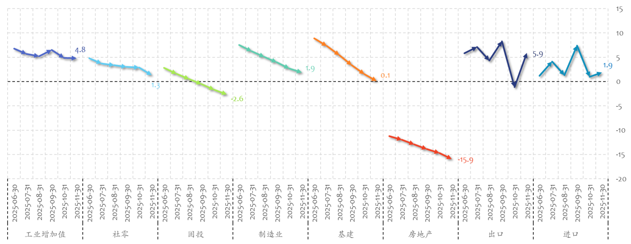 利空1:昨天公布了11月份的宏观经济数据,现在也不让评论,只能这么说,非常的好啊,大家看看趋势明确的很,我直接给图片,具体数据反正也不敢说,说就是稳中向好,韧性十足,基础夯实。