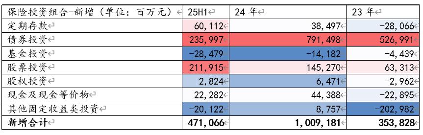 从配置变化看,2023年至2024年大幅增配债券,同时逐步增加股票投资;2025年上半年债券与股票增量基本相当,节奏契合市场波动。