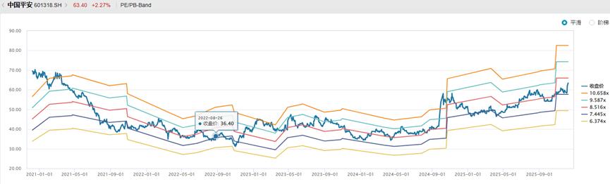 03 是否到了可以乐观的时点?截至2025年12月15日,中国平安市盈率(PE)为8.6倍,市净率(PB)为1.23倍,股息率约4%。从PB看,中国平安是A股上市保险公司中估值最低的;从PE看,仍较同业有一定溢价。