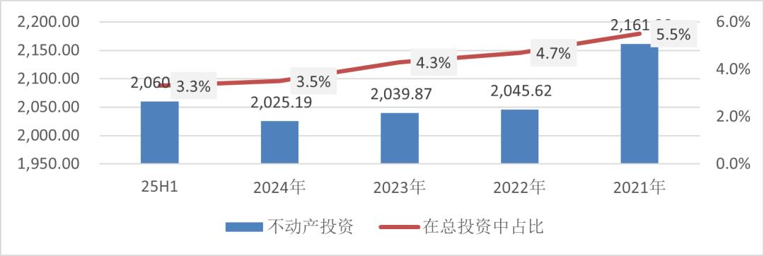 2021年末,中国平安地产投资规模为2161亿元,占总投资的5.5%;截至2025年上半年,地产投资降至2060亿元,占比为3.3%,金额与比例均实现压降。