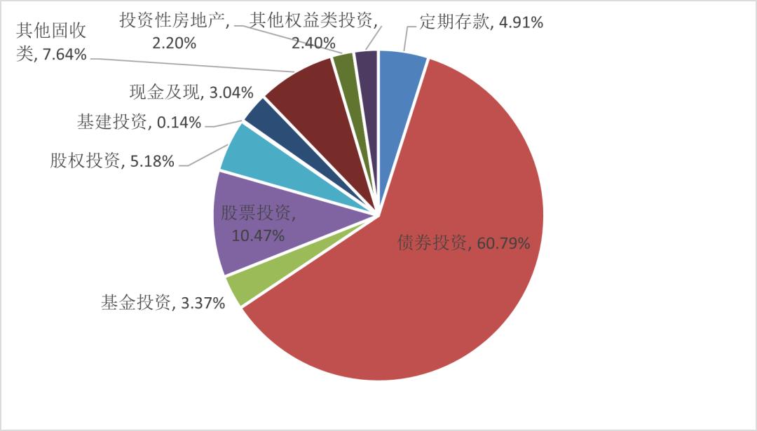 图:资金投资组合中以债券投资为主,权益类提升明显