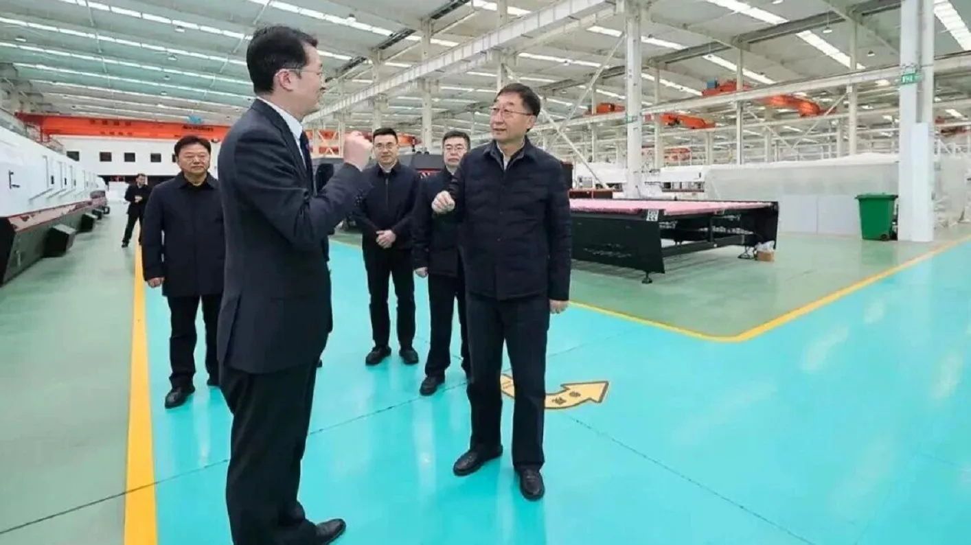 在北玻高端装备产业园,刘宁书记首先来到研发中心大楼,听取了关于大楼外立面采用的北玻自研18.3米超高玻璃幕墙与轻晶石装配式墙体等创新技术的介绍。随后,他步入规模宏大、设备精良的高端装备生产车间,实地察看生产规划与玻璃钢化设备生产线等情况,详细了解北玻在玻璃深加工领域的技术创新与先进工艺。