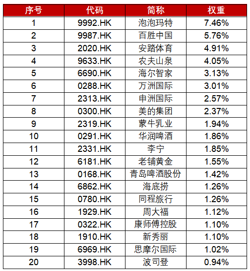 港股通消费(931454.CSI)前二十大成份股