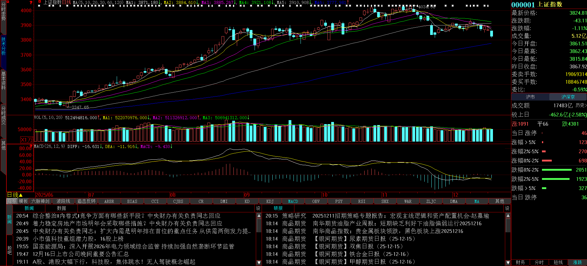 从沪指日K线图看,沪指已破位了11月24日的盘中低点,创下本轮调整新低点,收盘也收成一根中阴线,日K线图看上去像是再下了一个台阶,短线如不能强势收复,将剑指3800点关口了,年内行情大致上也没多什么大意思了。