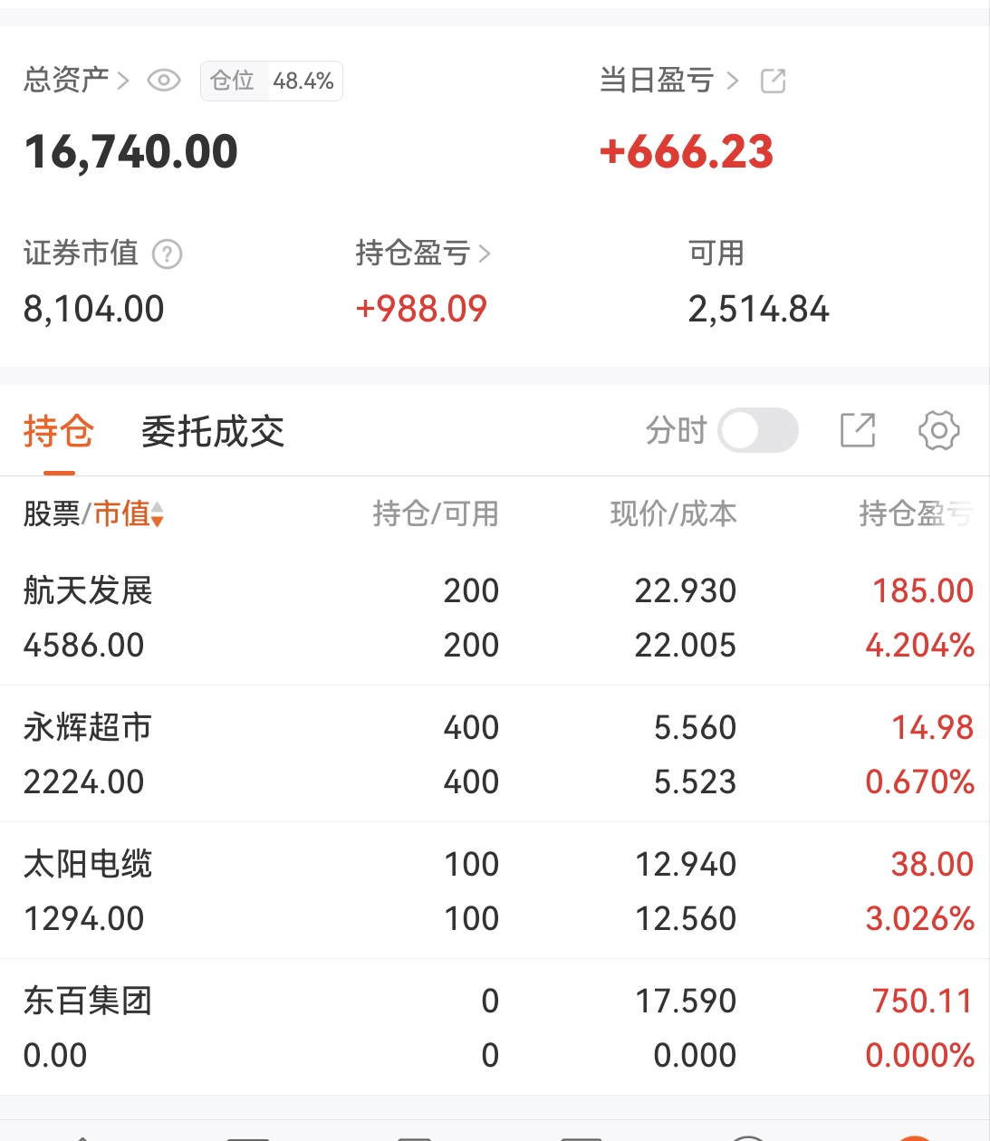 今日持仓如下: