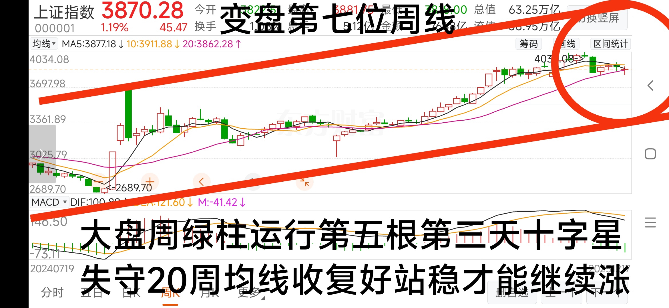 大盘在绿柱区第五根第三天收变盘十字星,失守的20周均线已经收复好,只要站稳才能继续向涨。虽然我们无法掌控指数涨跌,但是我们可以控制好自己的仓位,跟随市场的变化随机应变。