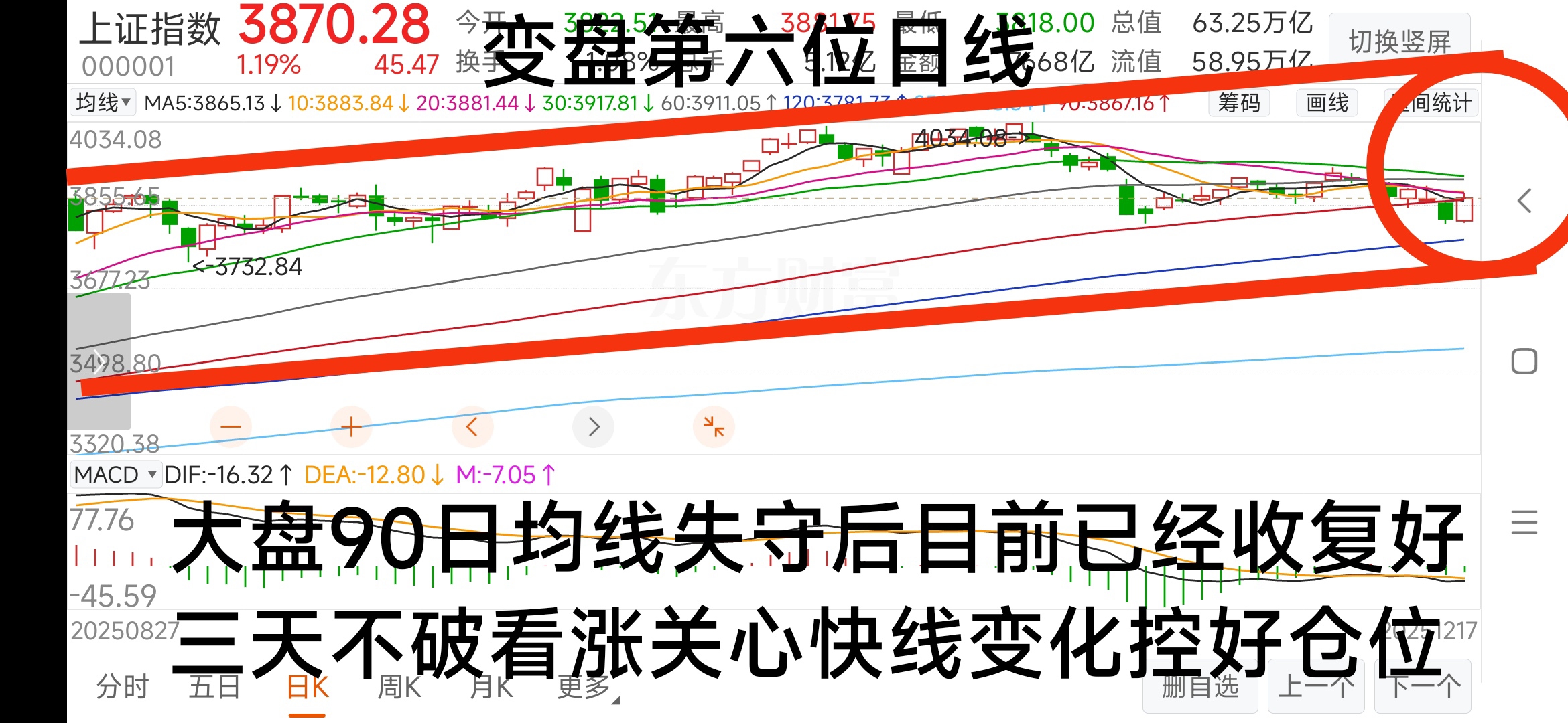 大盘90日均线失守后目前已经收复好,三天内不再跌破后市继续向上发展。关心好变盘先峰5分钟运行的变化控好该有的仓位。