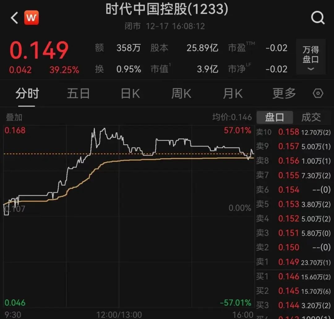 时代中国控股盘中一度飙升57%