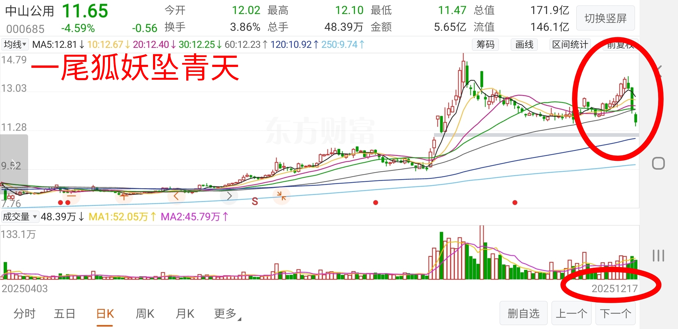 年初我曾写过多篇关于中山公用的文章,因为我发现有人在吹票。我相信,当时挡住了很多散户中圈。所以我是招恨的,记得有一次我对一篇关于白酒的文章评论道:“不喝,不买”,结果有人就在我的评论后面跟一句“吧”,足见当时我多么招人恨。后来,我就不再过问中山公用的事了。中山公用的董秘,连续回答提问,声称该公司参加了新能源产业基金,该基金对沐曦股份进行了投资。再后来中山公用就飞天了。最近沐曦上市了,与之相伴随的是一尾狐妖坠青天,见下图。