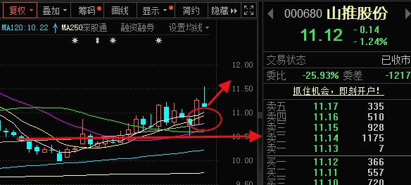 山推股份(000680)目前走势不差,今天有所突破,但是没有站稳,回落并有所下跌,但问题不大,五日线很好在上升趋势,我会继续拿着这支票,只要没有突破10.50支撑位,我都会拿着,跌破支撑位减仓。