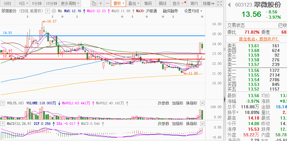 $翠微股份(SH603123)$:昨天低开维持高位窄幅震荡,整体还是符合预期,昨天早文八哥提示了操作逢高做减法,目前仍有利润在手,而翠微以数字支付与商业转型双轮驱动,打造智慧零售新生态,引领消费体验升级。目前底部反弹加速走出两连板,短期有望加速走出一波上攻趋势,昨天缩量调整,今天不排除持续持续上攻的动作。下方以涨停板底部做止损参考。