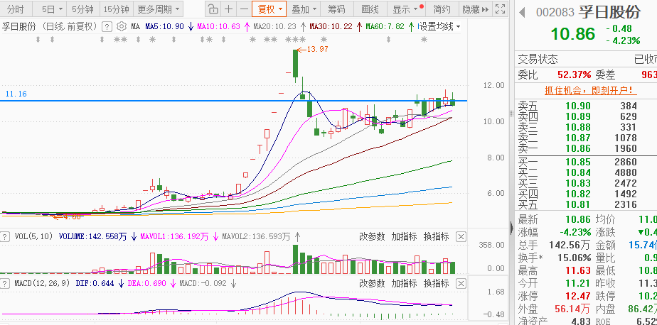 孚日股份:昨天延续周三炸板调整,但下方量能来看并未放量出逃,这个位置大概率是假动作,短期还是有蓄势爆发的动能在的,可持续格局震荡看多。毕竟公司是全球领先的家纺与新能源材料制造商,在布局锂电领域,涉及锂电原料提供、产品生产上下游产业链,为行业内少有的全产业链发展的公司。百亿的市值目前仅十块左右的股价是极具想象空间的。下方10日线止损位。