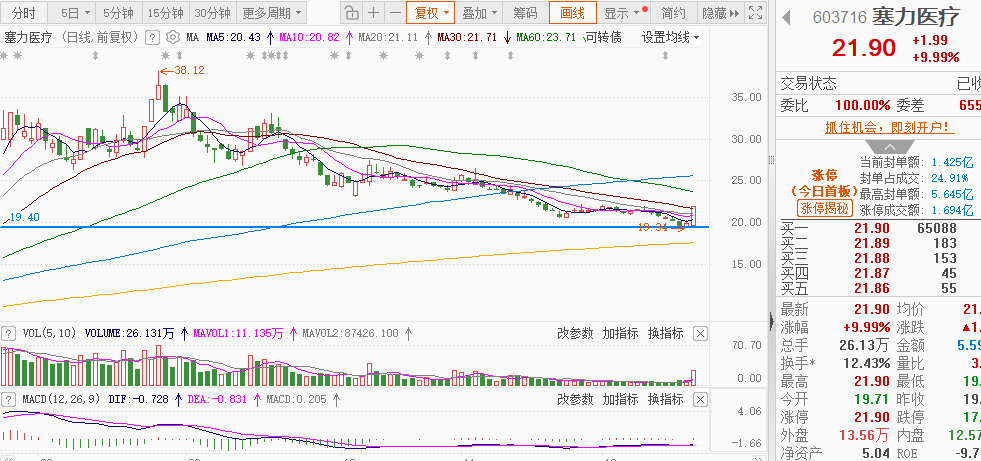 $塞力医疗(SH603716)$:(AI医疗)昨天市场AI医疗方向可谓是底部爆发,消息面利好刺激也是多点爆发,但板块是否有持续性,八哥觉得当前市场盘面只要有亮点热点资金就会追捧,而塞力医疗作为智慧医疗创新者,以AI+大数据赋能精准诊断与SPD服务,推动医疗健康数字化升级。也算是人气选手了,昨天震荡冲板,短期走出连板的概率还是较大的,毕竟底部反弹目前性价比还是较高的。早盘可小仓跟车博弈。