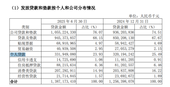 据2025年中报,南京银行对公房地产业贷款余额627.17亿元,占总贷款比重4.52%;个人住房按揭贷款余额882.20亿元,占比6.36%,两者合计构成的广义房地产相关贷款占总贷款比重超过9%。