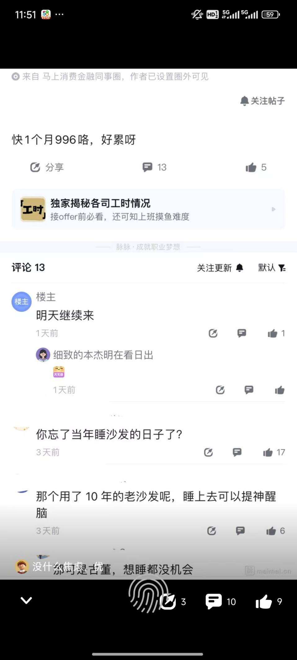 根据脉脉上大量署名马消的人士透露,马上消金开始实行度并且裁员,此次转岗裁员比例达30%—50%。根据财报数据,2024年末公司员工人数3624人,预计裁员达1087至1812人。