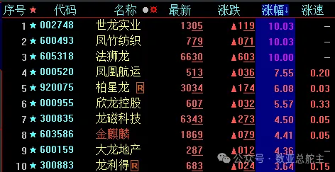 二进一,二三新进。鹭燕医药3板升榜一,嘉美包装3板新进榜二,西部材料2板新进榜三。前三平均涨幅+9.98%,今天妖股军团领队表现很好。