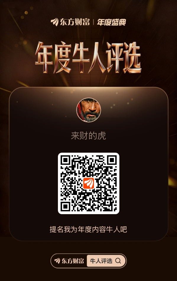 东财的年度牛人入围活动开启了,喜欢看虎哥的有空时点点入围票,有投票的说一下哈眼熟眼熟!有幸入围的话即不留余力!