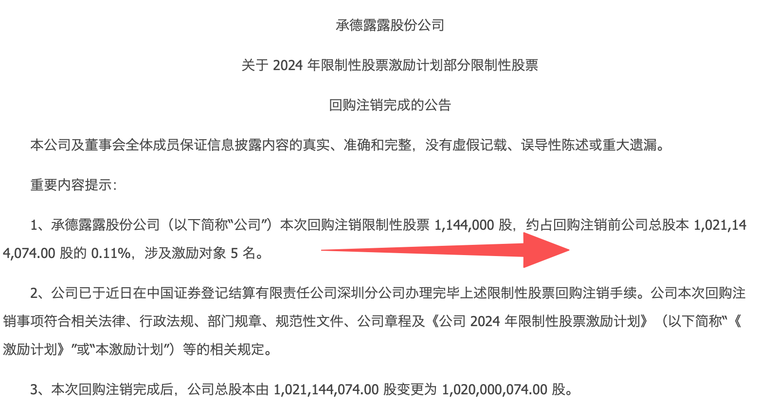 这个股票回购注销了104万股。