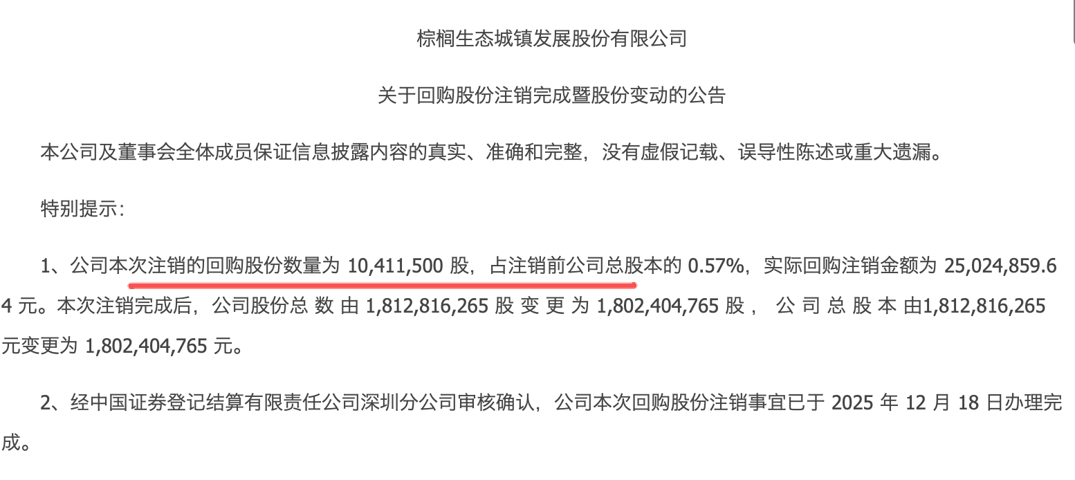 这个股票回购注销了1041万股。