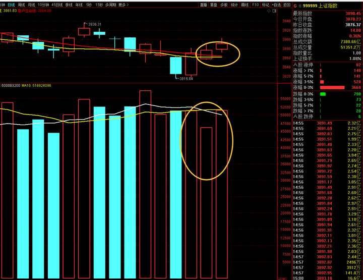 最后来和大家讲解一下盘面的情况,昨天和大家说过的重点关注一下3860的点位看能不能支撑住,支撑不破的情况下加上量能来说一定是要放量的,看新一轮的反弹行情,今天妥妥的是放量温和上涨的,前面两天都是权重在涨题材很差,那么今天题材是全面开始反弹的,加上放量的行情下,可以积极看多为主。下周重点关注前面阶段性高点的3936压力,后如果说突破了新一轮的行情起爆,如果没有突破上去就要注意在3860和3936这个阶段走震荡行情,当然了不过多去做预测,盘中实时跟踪就好了!