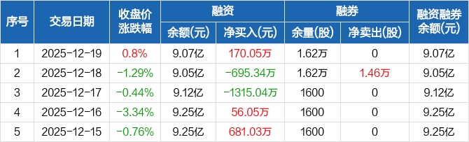 就比如融资融券,仓位调整幅度越来越小,2025年12月19日融资净买入170.05万元;融资余额9.07亿元,较前一日增加0.19%。