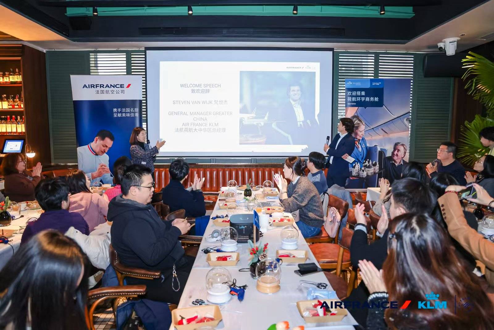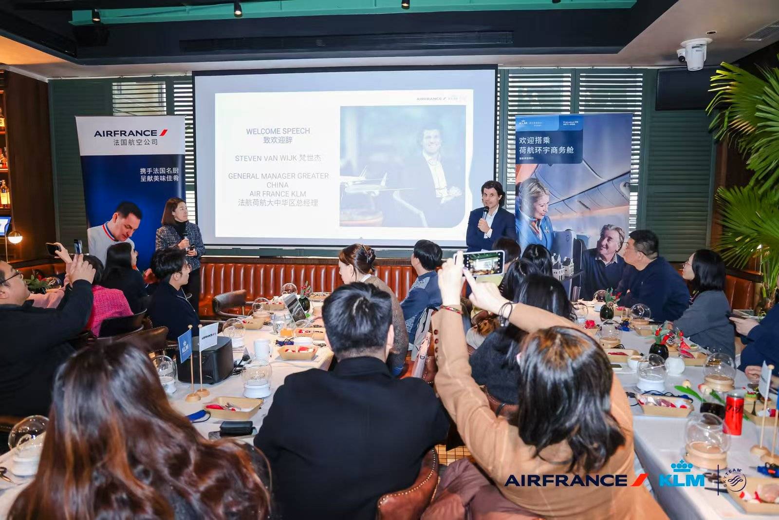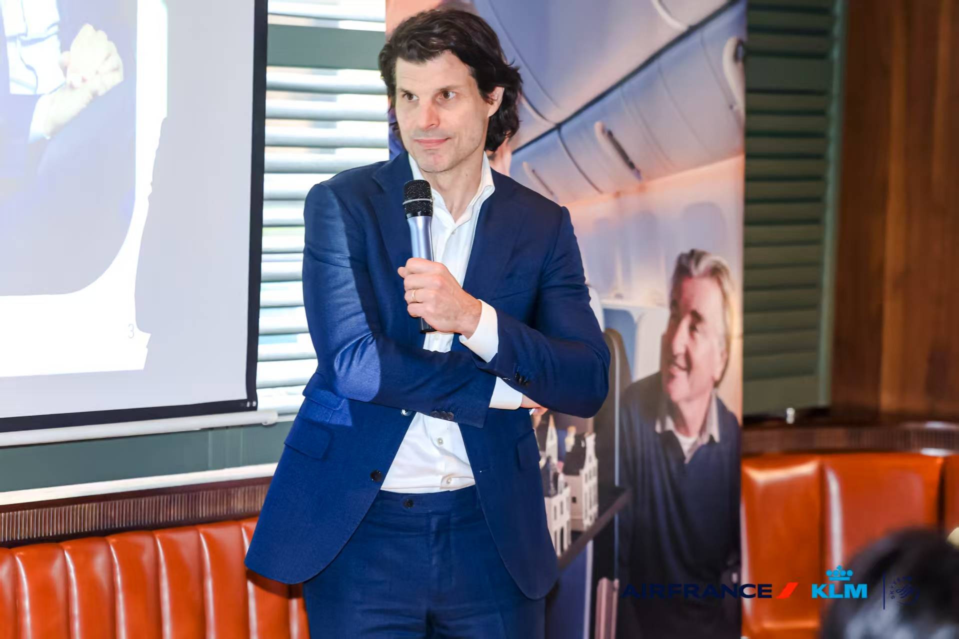 梵世杰先生在致辞中强调了法航荷航在中国市场的战略重点,首先是其广泛的航线网络。今年冬季,法航和荷航每周运营40个航班往返于欧洲和中国主要城市,包括北京、上海、台北和香港。此外,法航荷航还继续大力投入提升客户体验,例如:法航推出全新La Premire头等舱套间,在长途商务舱推出索菲特MY BED床垫,推出超高速Wi-Fi,引入更便捷的值机流程以及更丰富的机上娱乐系统。荷航计划于2027年推出针对洲际航班的全新服务理念,旨在提供更个性化的互动服务和更多的座位选择。