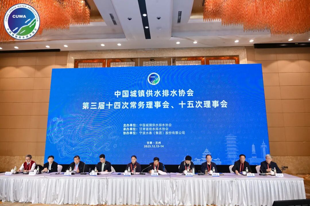 2025年12月14日,由中国城镇供水排水协会(以下简称“中国水协”)主办,甘肃省给水排水协会承办,宁波水表(集团)股份有限公司(以下简称“宁水集团”)独家协办的“中国城镇供水排水协会第三届十四次常务理事会、十五次理事会”在甘肃兰州圆满落幕。中国水协会长、副会长以及150余家常务理事和理事单位共240余名代表出席会议。部分非理事单位地方水协代表及分支机构代表列席会议。