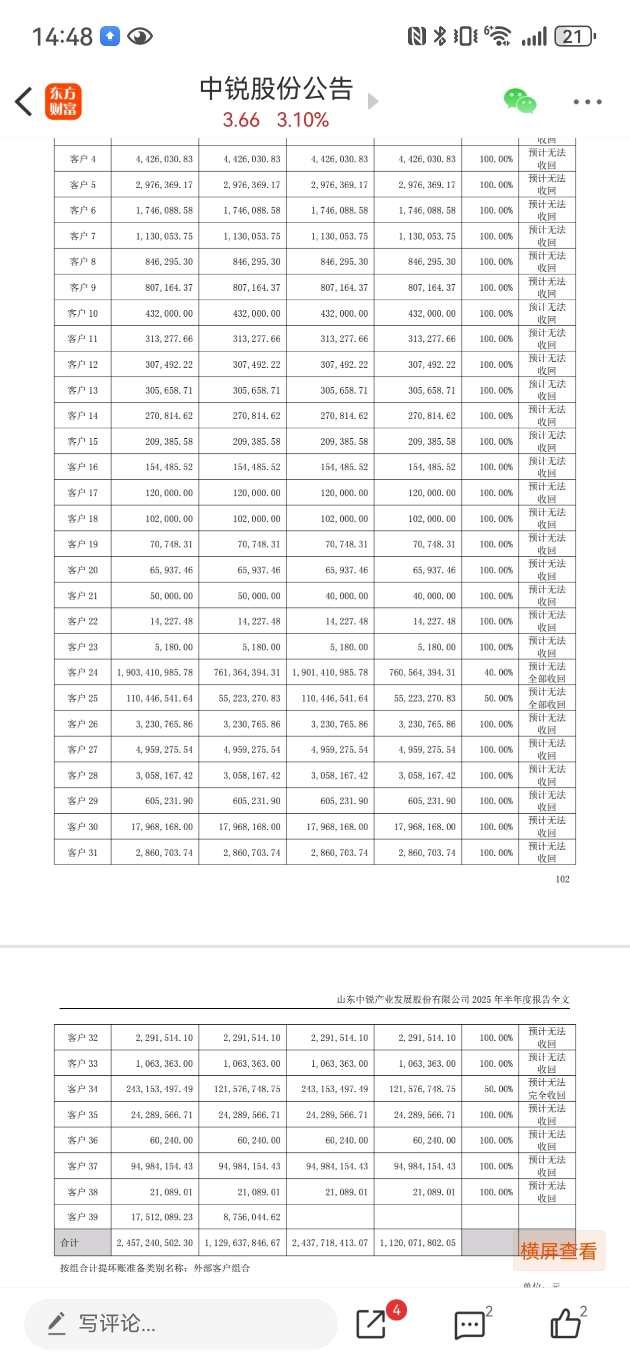 很多人不知道6.30清债的威力!目前,工信部的拖欠企业工程款投诉平台,只要投诉了,半年内能解决问题,我经历的数起投诉地方政府和国资平台以及国企欠工程款事项,要回工程款成功率100%!这也是我坚持持股中锐这个看起来像垃圾股(年年亏损,净资产小于1,看起来要退市的样子)的底气所在!谈判的时候会有拉扯,小额基本不让利,大额的要打点折或者要抵房什么的。中锐的欠款金额超大,所以谈判要难一些。过去的解决路径只有地方政府拿出资产抵债或者筹措预算内资金或者银行贷款,去年开始增加了发行专项债还欠企业账款这个路径,而且金额非常大!每年有1.3万亿,2026年要增加到2万亿!要放在几年前,民营企业在谈判时绝对是弱势低位,但是去年基本上处于平等主体,到今年年底和明年上半年,就处于主动地位了!你们要好好学习本次中央经济工作会议的“加紧解决拖欠企业欠款”的表述!你们要好好学习本次中央经济工作会议的加紧解决拖欠企业欠款的表述!们要好好学习本次中央经济工作会议的加紧解决拖欠企业欠款的表述!重要的事说三遍!