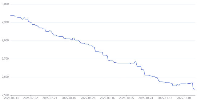 2025年6月-12月中药材综合200价格指数图 来源:中药材天地网