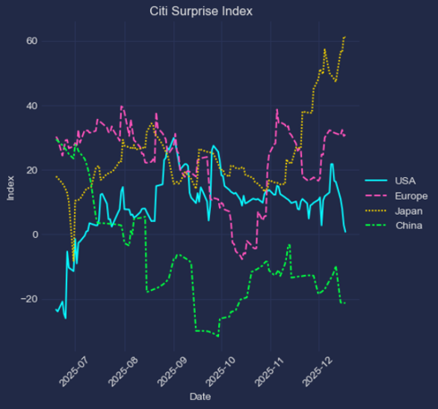 花旗经济意外指数:中美同步走弱,日本转强明显