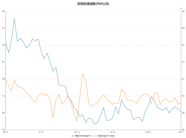 11月制造业PMI美国边际走弱,中美均在荣枯线下方
