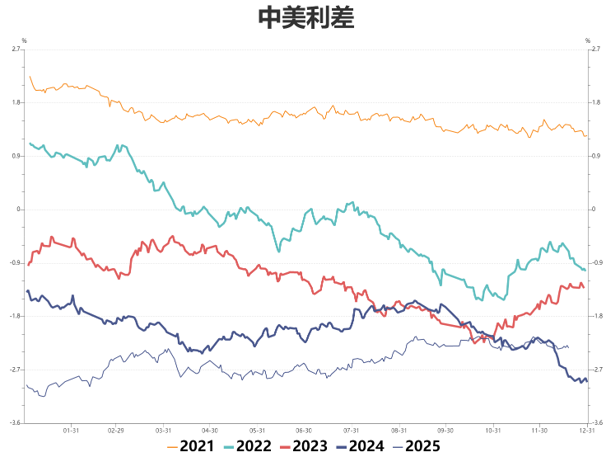 中美利差:变动不大,周五收-2.33