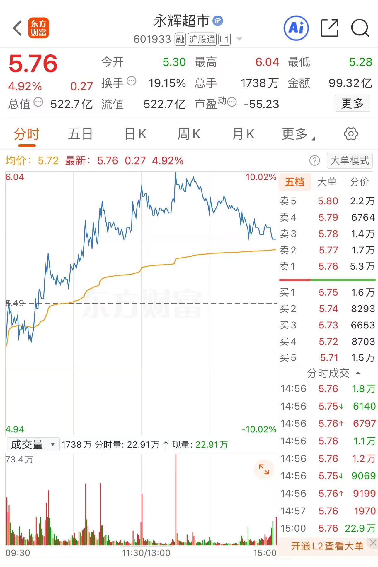 家人们!太强了!$永辉超市(SH601933)$周五的时候超预期拉升!盘中大涨10%,全日成交额99.32亿!