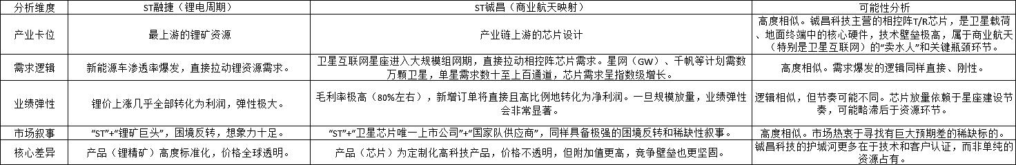 上一轮新能源波澜壮阔的行情中锂电最牛叉,而锂电中最牛叉的是ST融捷,现名融捷股份,那么将ST融捷映射到本轮商业航天的行情中,有且仅有一只,就是ST铖昌。