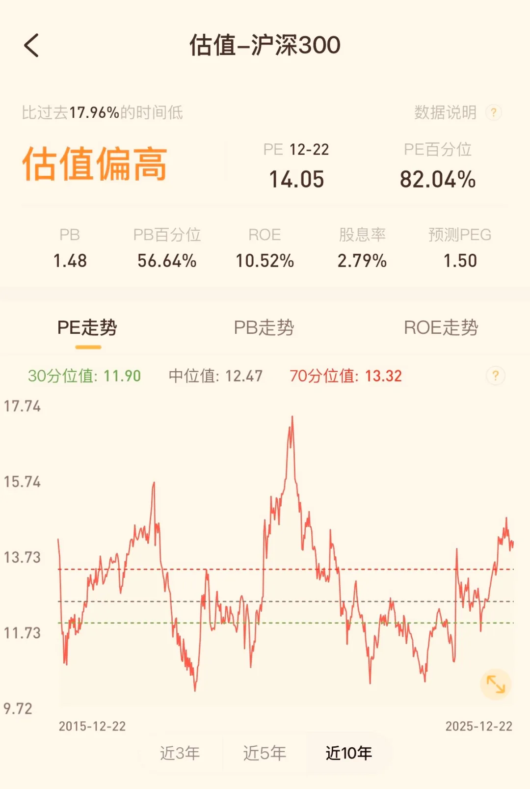 首先我们要知道的是,经过最近2年的上涨,目前整体股市的估值水平其实已经不低了。我们就以沪深300指数作为参考,目前市盈率为14.05倍,市盈率的百分位为82.04%,也就是说目前市场整体估值水平,近10年80%的时间要高。当然,现在不是最高的时候,但也是偏高的位置了。所以如果后面市场还是继续上涨,越是上涨大家也就越要注意风险了。