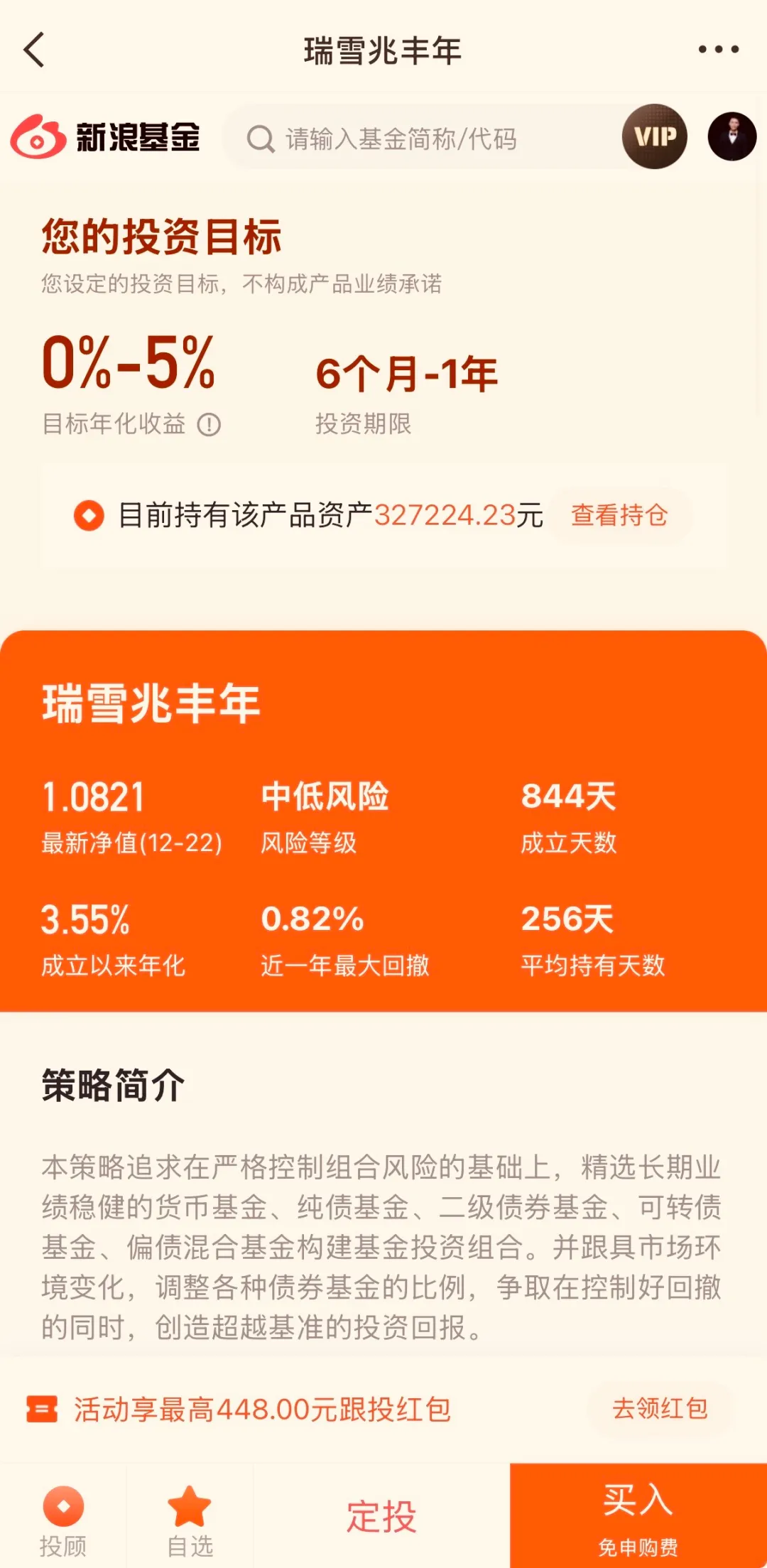债券基金我配置是瑞雪兆丰年债券基金组合,目前年化收益3.5%左右。现在固定收益的收益率也是一直在降低,目前银行存款只有1%多的收益率,银行理财也普遍只有2%左右的收益率,相比之下瑞雪债券基金组合3.5%的收益率还是非常不错的。