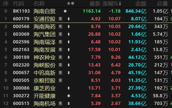 1、海南板块:板块昨天集体发力,涨停20余支,今天大部分掉队,涨停仅5支!还有一大半的标的以绿盘报收!所以明天又将是进一步兑现的一天,早盘文章提过一嘴,该板块要留意分化的危险!就目前来说,还没有出现明显出货迹象的仅海汽集团和海南发展(缩量一字拔高度)!