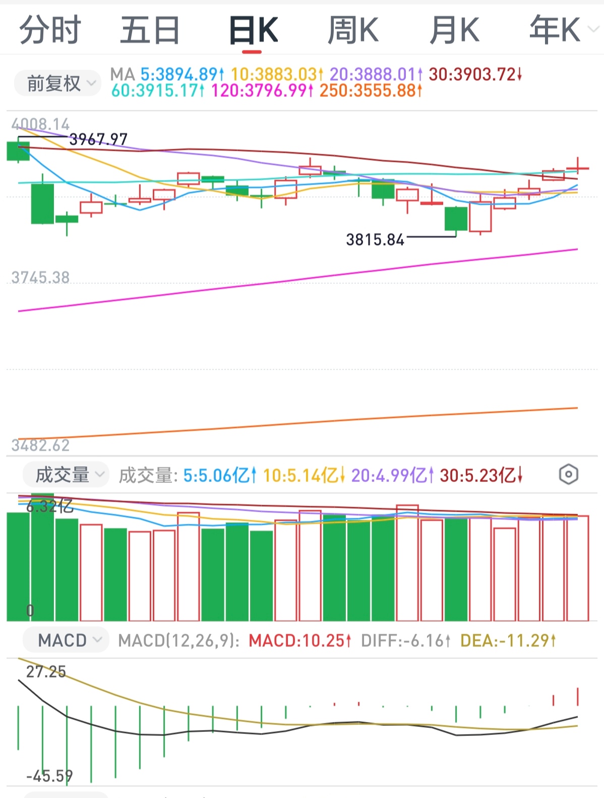 从均线上看,今日大盘受到了30日均线支撑,而且5日均线上穿了10日均线和20日均线,均线系统继续向好的方向发展。