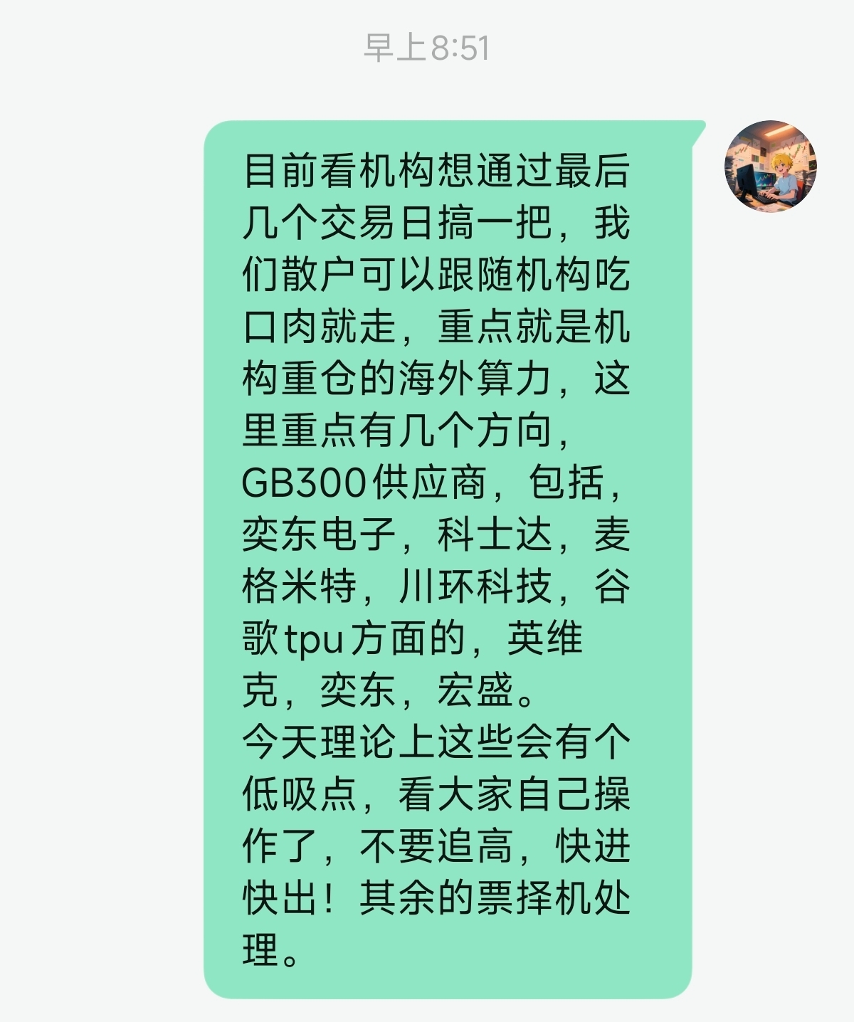 3、今天最给力的就是海外算力这块,也和粉丝朋友们吃了口肉,不错的