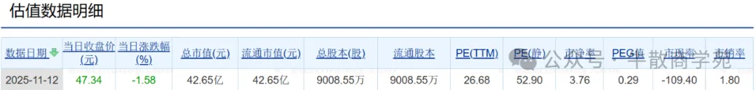 2025年11月12日,华光新材(688379)收盘价47.34元/股,涨跌幅-1.58%,市盈率(TTM)26.68倍,市净率3.76倍,市销率1.80倍,市值42.65亿元。
