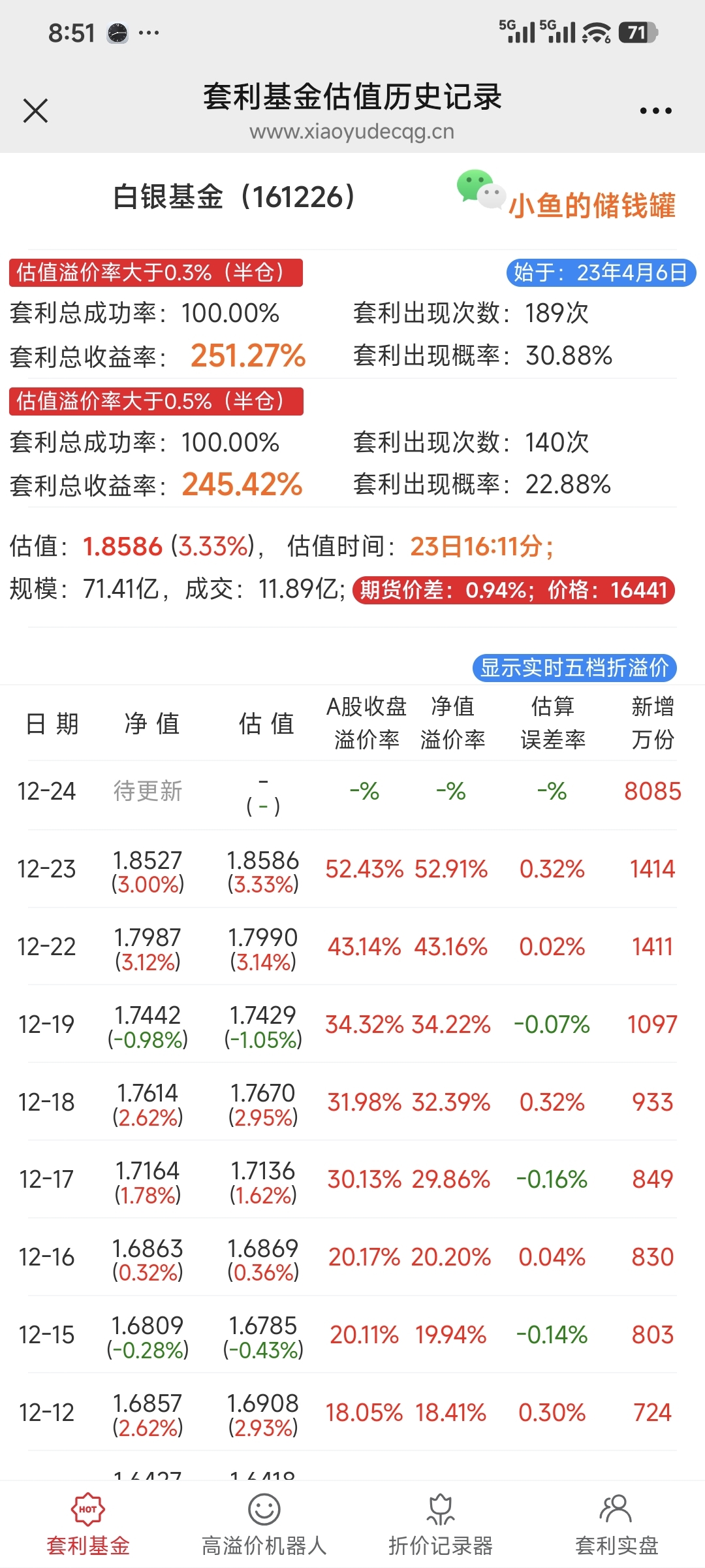 $国投白银LOF(SZ161226)$ 今日新增份额8085万份,按昨日收盘价计算成市值大概2.3亿,跟预计的差不多。