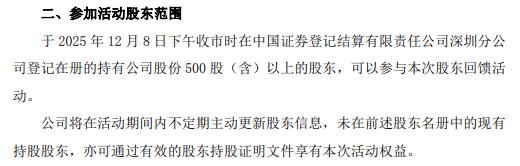 $东北制药(SZ000597)$昨日晚间发布公告,为了要股东更好了解自有的美妆品牌,将开展股东回馈活动,登记在2025年12月8日股东册,且持仓数目超过500股的股东,就能参与!