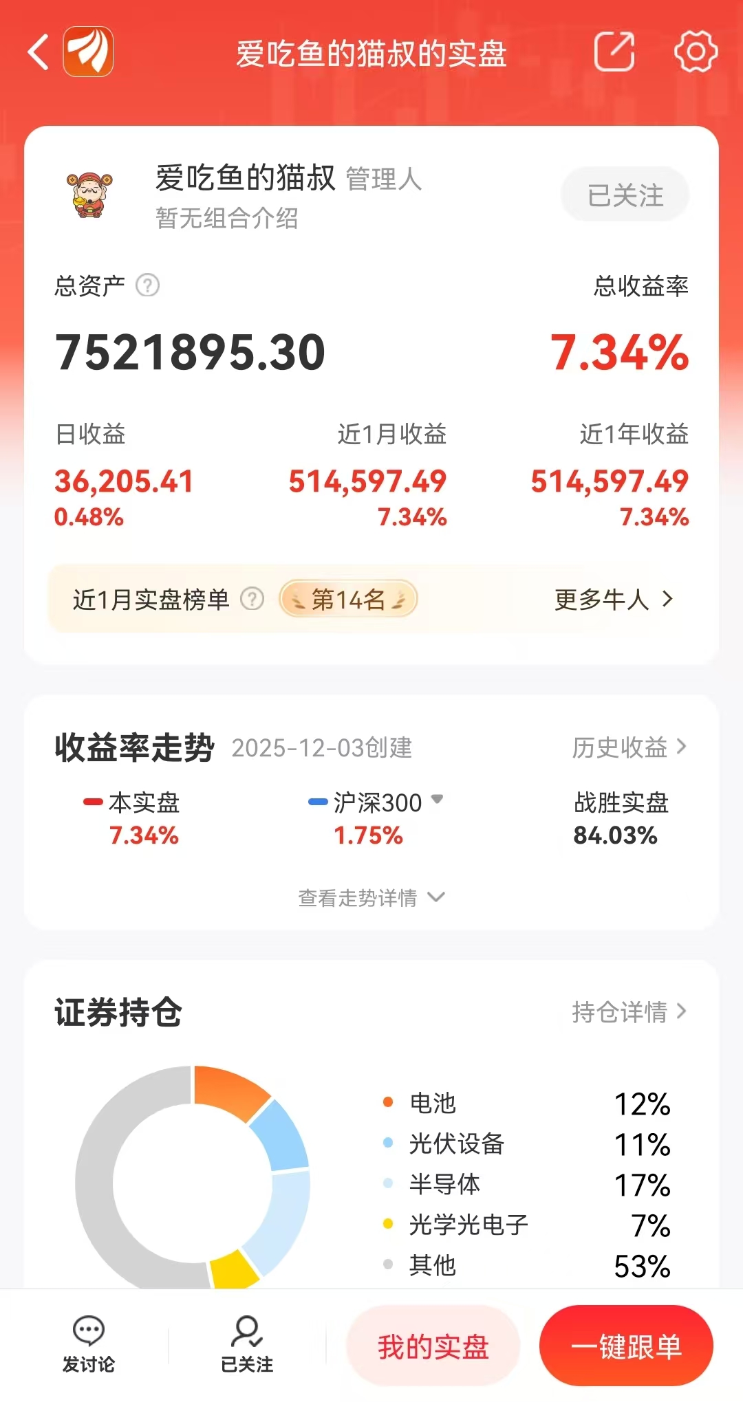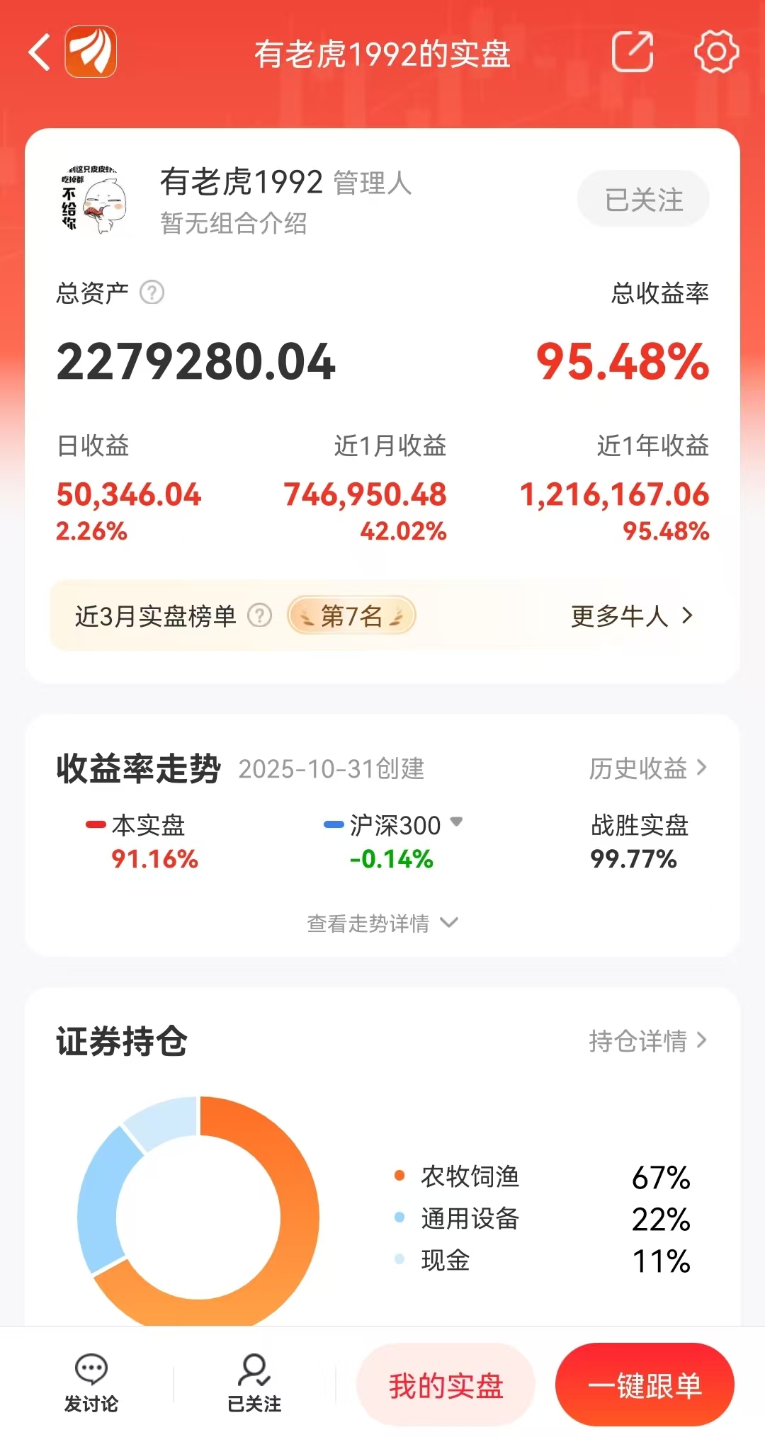精选君有话:七百多万资金体量的实盘大佬,持仓相对比较饱和,持续看好后市行情?