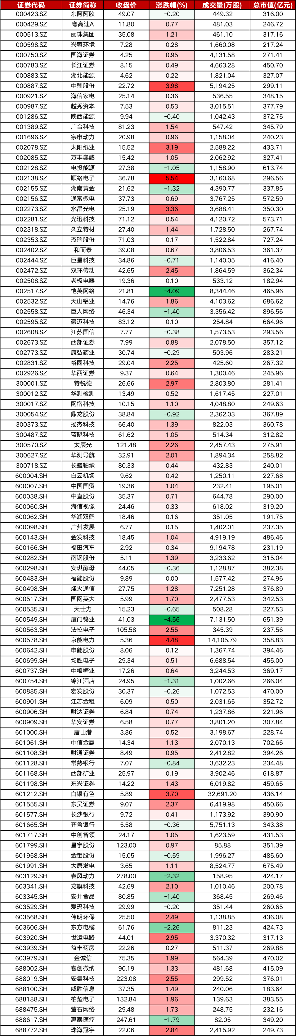 今日成分股顺络电子、京能电力涨幅居前。